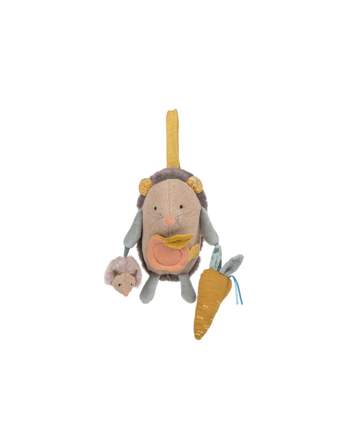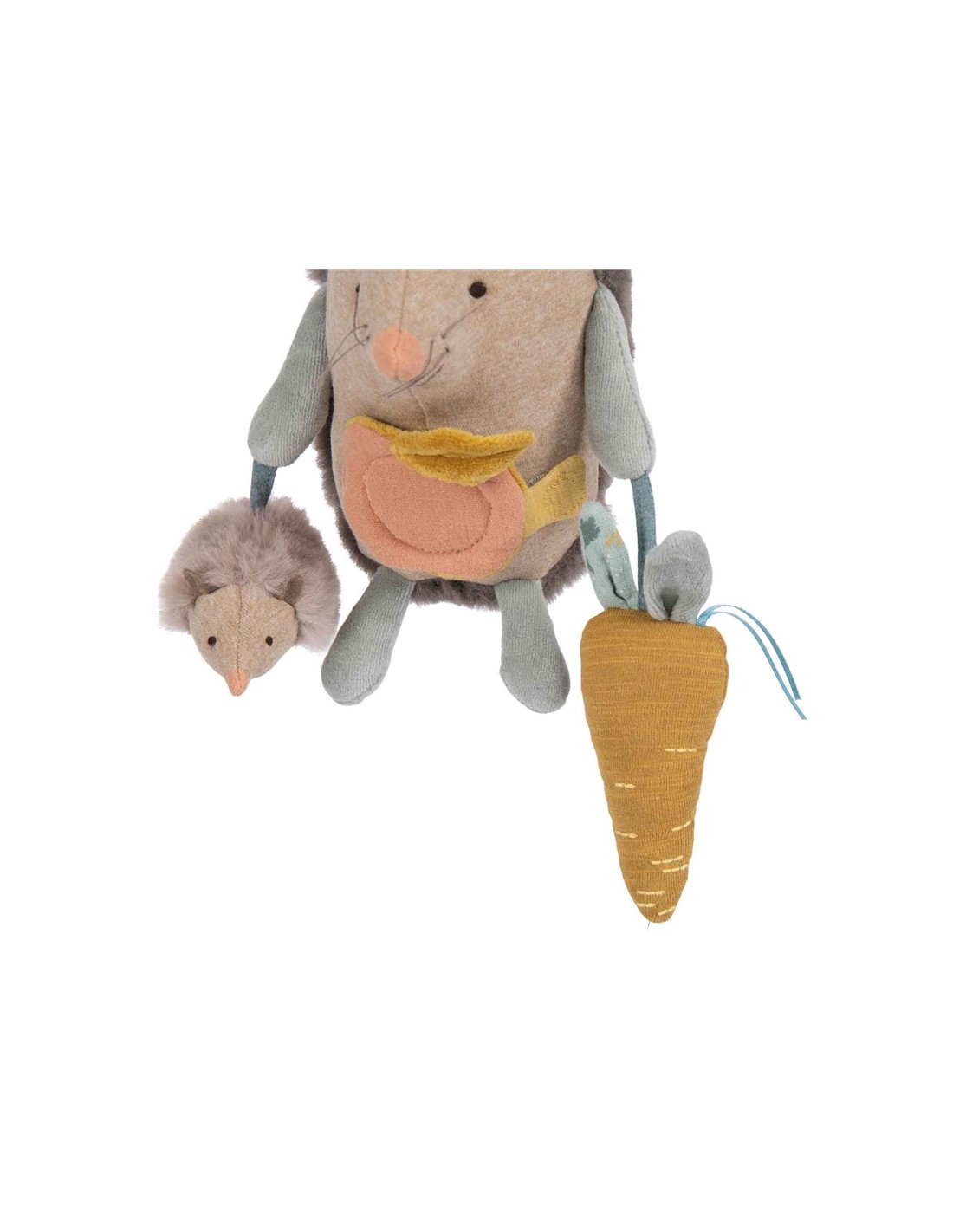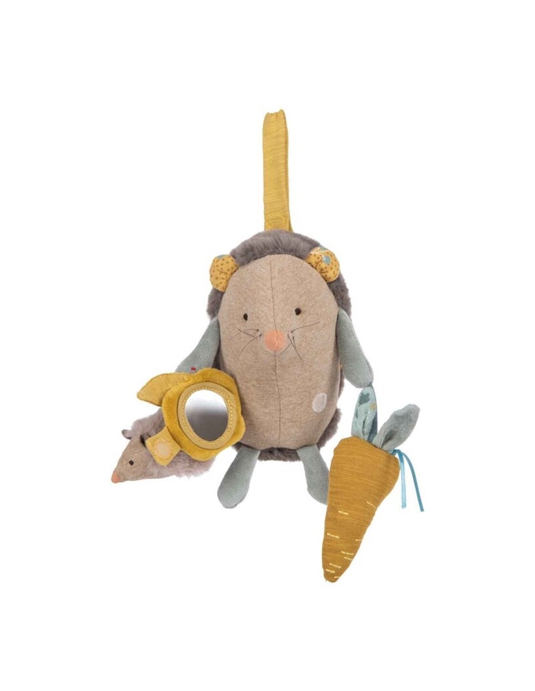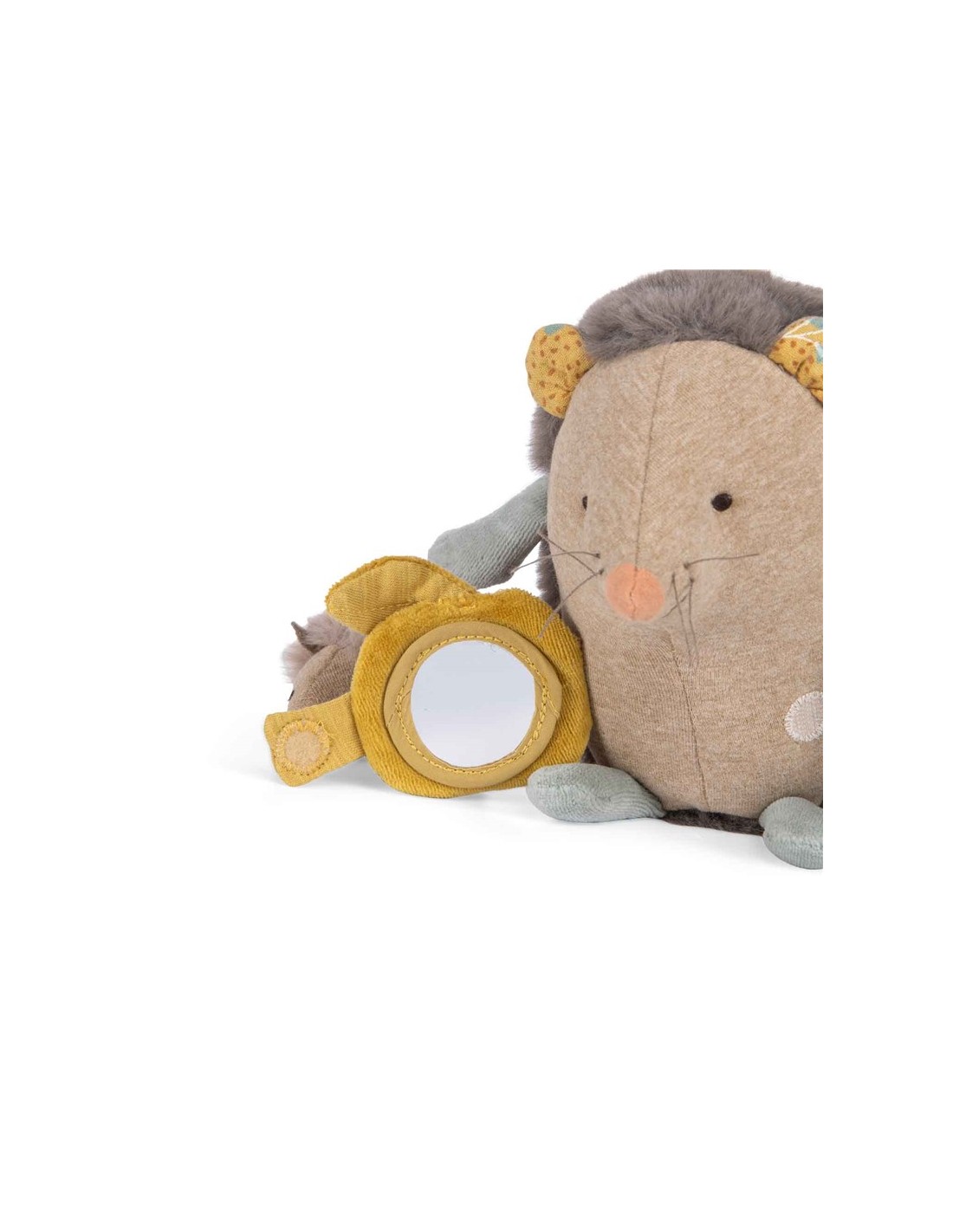 Este suave erizo con diferentes texturas y ruidos es ideal para colgar en la silleta, en la cama o para llevar en la mano y manipularlo mucho rato!